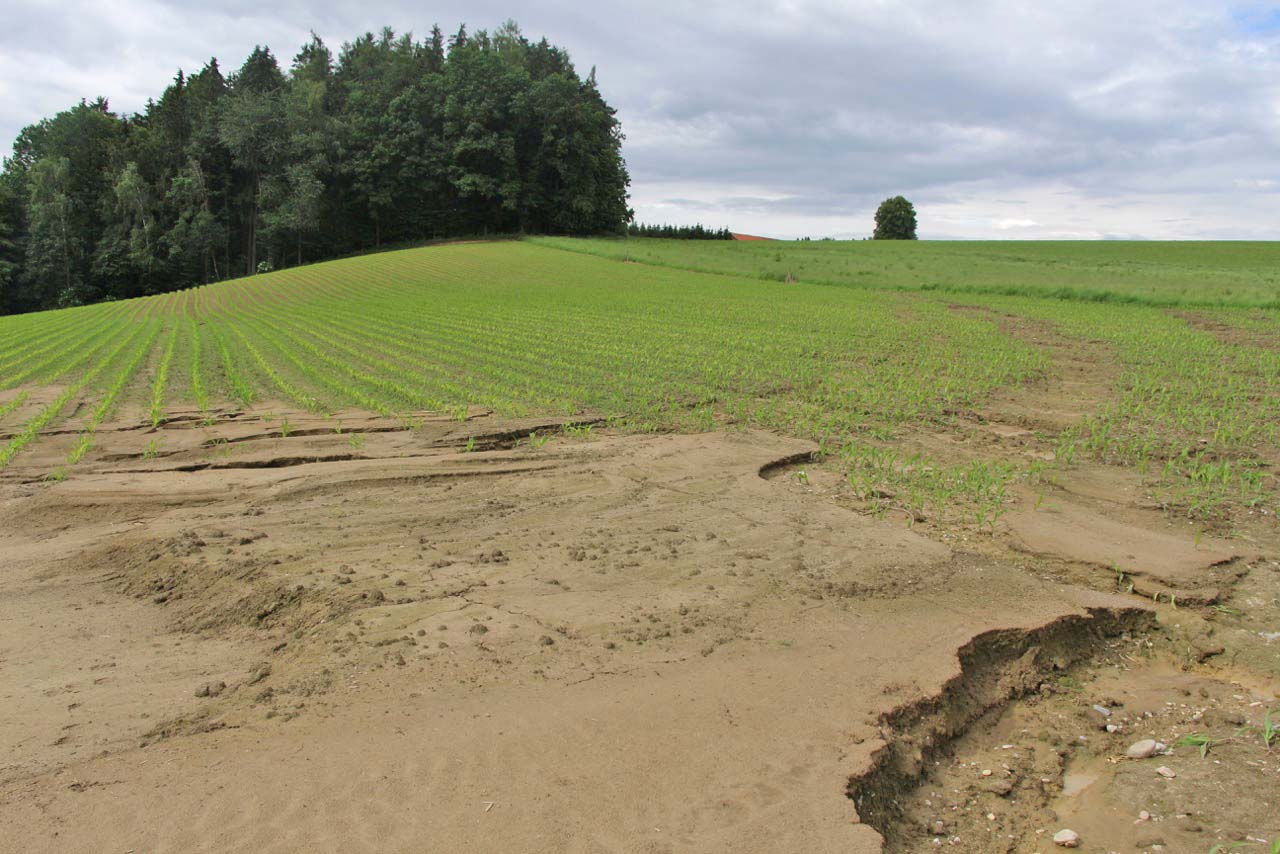 Die dramatischen Folgen der Hochwasserkatastrophe vom 1. Juni 2016 sind für die BUND-Naturschutz-Kreisgruppe Rottal-Inn (BN) ein Alarmsignal, welches endlich dazu führen müsse, dass wesentlich konsequenter als bisher der Klimawandel bekämpft wird und endlich vorbeugende Schutzmaßnahmen zur Reduktion der Folgen der Klimaerwärmung ergriffen werden. Das Bild (Klick vergrößert) zeigt eine Abschwemmung in einem Maisacker. Hier der gesamte Text der zugehörigen Pressemitteilung.