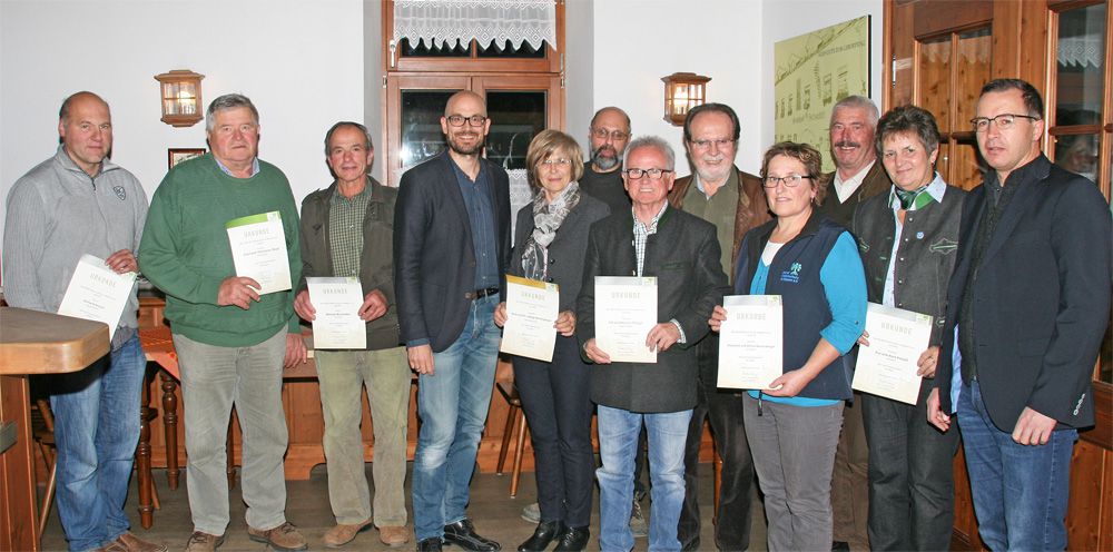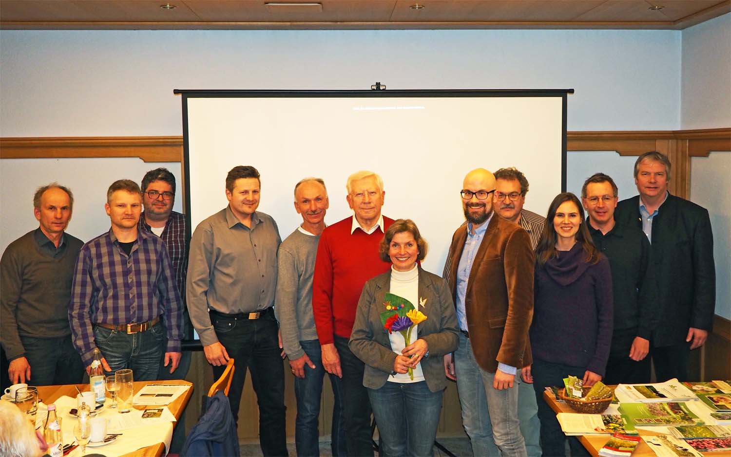 Im Rahmen der Jahreshauptversammlung der Bund-Naturschutz-Kreisgruppe Rottal-Inn wurden auch zahlreiche langjährige Mitglieder geehrt. Kreisvorsitzender Matthias Schmöller dankte allen und würdigte die überwiegend jahrzehntelange Zugehörigkeit zum Umweltschutzverband: "Wer sich über so lange Zeit hinweg nicht nur mit dem Bund Naturschutz als Verein sondern vor allem mit dessen Zielsetzung, der Bewahrung unserer Lebensgrundlagen, identifiziert, der zeigt, wie ernst er die vielen Bedrohungen der Natur heute nimmt." Die Geehrten (v. links): Gerhard Kneissl (30 Jahre Mitglied), Josef Riepl (20 Jahre Mitglied mit Frau Marianne Riepl), Michael Brunhuber (30 Jahre), Kreisvorsitzender Matthias Schmöller, Anne Hennersperger (zusammen mit Dr. Ludwig Hennersperger 40 Jahre), Heinz Enzinger-Panitz (30 Jahre), Helmut Ellinger (zusammen mit Frau Evi 30 Jahre), Karl-Heinz Steiner (zusammen mit Frau Magda 40 Jahre), Marianne Watzenberger (zusammen mit Alfred Watzenberger 30 Jahre), Alois und Eva Petschl (beide 30 Jahre) sowie stellvertretender Kreisvorsitzender Dr. Jürgen Riedler. – Foto: Hascher