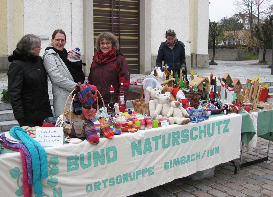 Auf reges Interesse von Seiten der Bevölkerung stieß der Info- und Geschenke-Stand der Bund-Naturschutz-Ortsgruppe "Unterer Inn" auf dem vorweihnachtlichen Markt am Kirchenplatz in Simbach. Dank des Einsatzes vieler Helferinnen konnte wieder ein schöner Erlös für die Artenschutz-Arbeit erzielt werden. Der Dank der Ortsgruppen-Vorsitzenden Marianne Watzenberger galt allen, die wiederum zu diesem Basar beigetragen hatten.