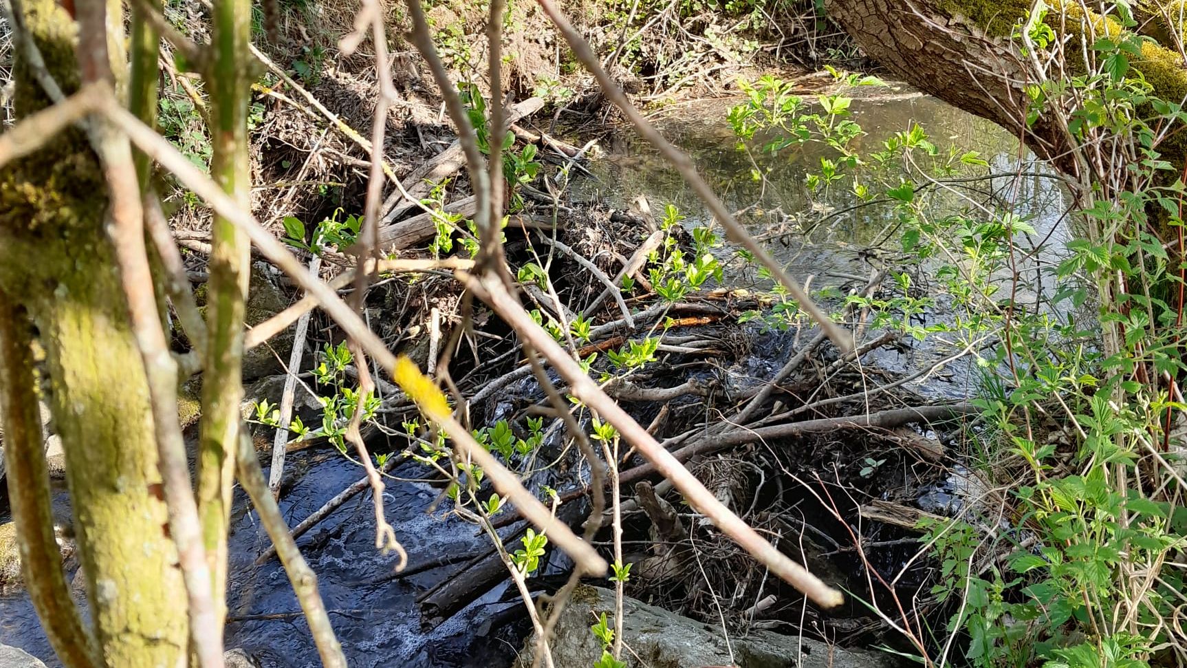 Es fanden sich einige fachlich Interessierte zur kurzfristigen Begehung des BN-eigenen Biotopes ein und konnten zahlreiche Aktivitäten des Bibers entdecken, wie zwei biberburgsichernde Dämme und auch alte sowie aktuelle Nagezeichen an Gehölzen. Auch stehendes, liegendes sowie hängendes Totholz war offenbar sehr nachgefragt bei u. a. Insekten, Spechten und Pilzen.